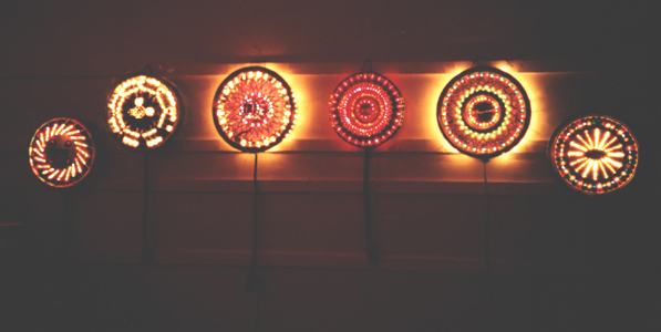 materials: xmas lights, hubcaps, electronic circuitry