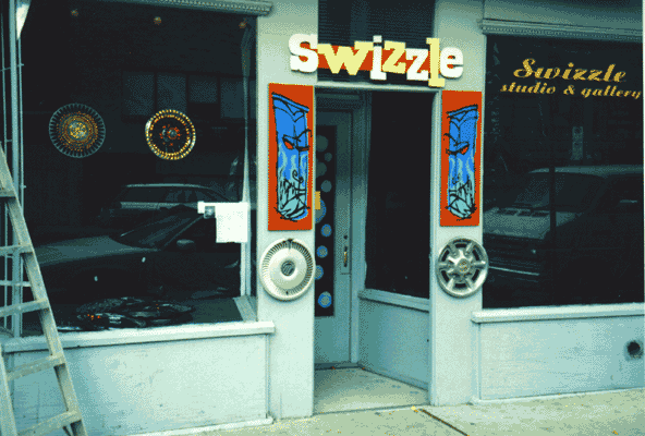 Sexy Wheel Cover UP October 2000 @ Swizzle Gallery This is the exterior of SwizzleGallery, 1162 College St. Toronto Ontario Canada In the left window from left to right are: Cyclonic Reducer & Boogie GT
